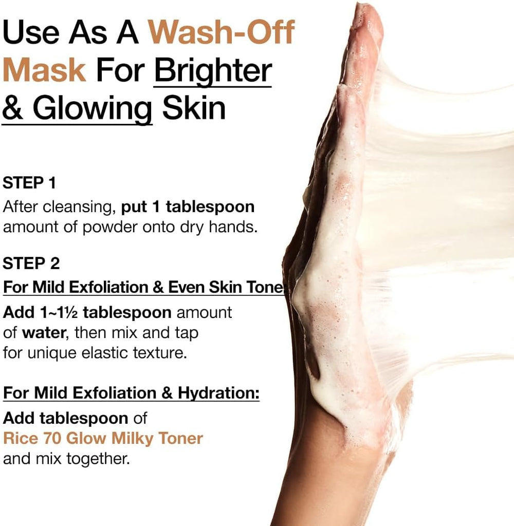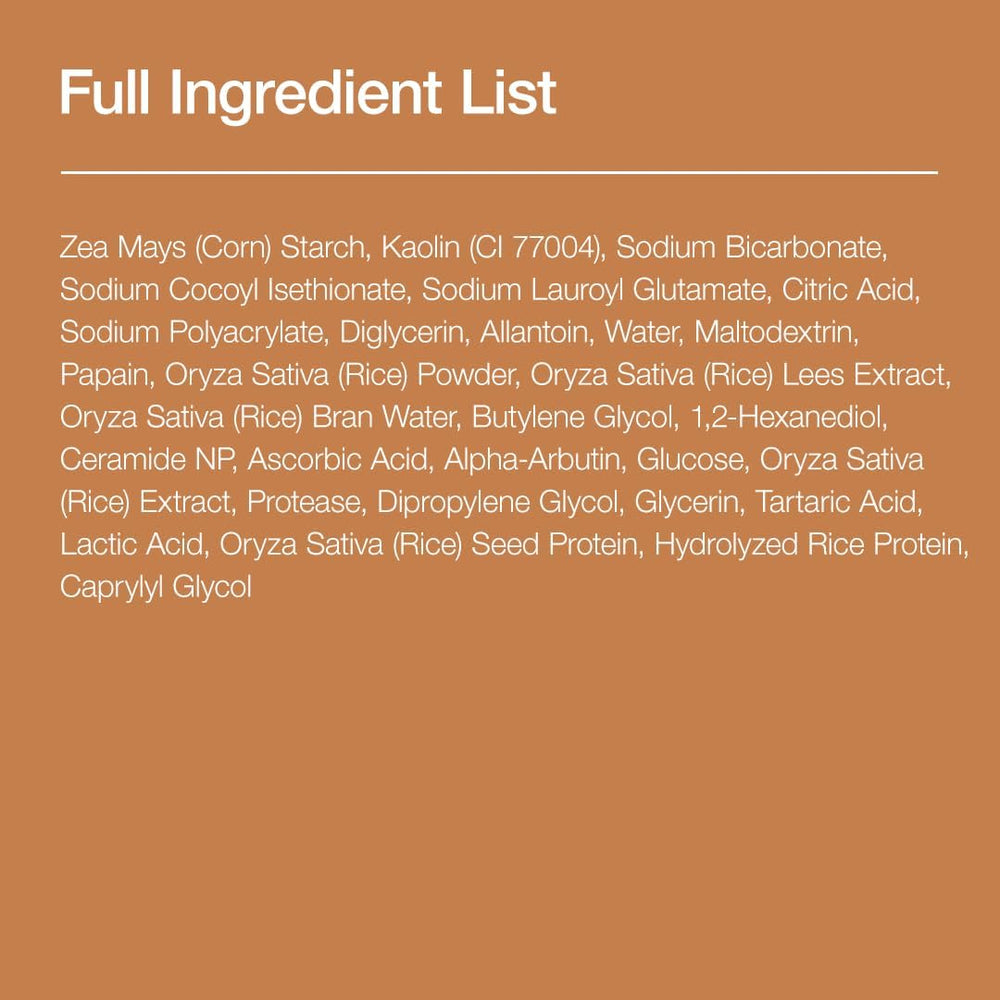 مسحوق ومستخلص الأرز: غني بالفيتامينات والمعادن، يساعد على توحيد لون البشرة وتفتيحها تدريجيًا.