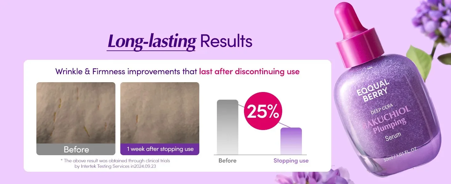 EQUAL BERRY Bakuchiol Plumping Serum هو سيروم فاخر مضاد للشيخوخة، يحتوي على Bakuchiol بنسبة عالية، وهو مكون نباتي طبيعي يُعرف بكونه البديل اللطيف للريتينول. يمنح البشرة نفس فوائد مكافحة التجاعيد وتحفيز إنتاج الكولاجين، لكن بدون التهيج أو الحساسية التي قد يسببها الريتينول التقليدي.